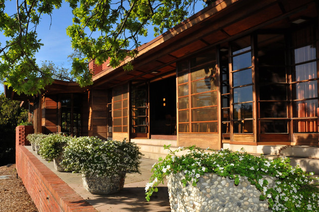 During the 1930's, Wright designed a series of residential structures which came to be known as the Usonian Houses. Unlike the earlier Prairie structures, these designs had no basements or attics, were primarily single-story buildings; they continued his focus on long, horizontal sight lines, with banks of horizontal windows, and also exploited open plan layouts; and were always well-integrated (fitted) into the landscape where they stood. Among the most successful and satisfying of his Usonian houses, was the Hanna House in Stanford, California, begun in 1937, which employs the application of the 30-60 degree angle--roughly, the angular dimensional arc of the honeycomb.