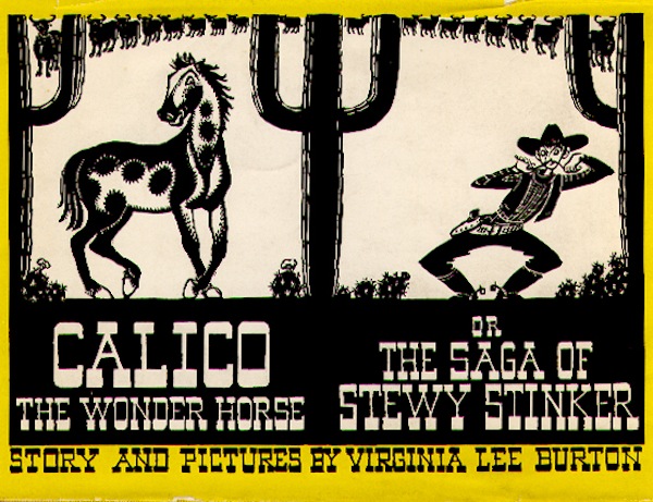 As children, we're at the mercy of our parents' will. What we know of life and conduct and possibility comes directly from their sense of the world. Parents are our guides in the first formative years, and what they think determines to a large degree how we turn out as we mature. For many children, the childhood years turn out to be a kind of collaboration between the irresponsibility of their parents, and the necessity of adapting to uncertain conditions; in many broken homes, children in effect raise themselves. But that wasn't the case with me. My parents had confident notions about how best to raise a child, and that included, from the beginning, a steady diet of reading. Until I was about 7, I was read to; thereafter, I was made to read out loud about every other night. I can now clearly recall memorizing these early children's stories, and certain ones became favorites which we would read over and over again, almost like a kind of mantra. My parents weren't religious, at least in the specific sense of that word (they never attended church), but the performance of language texts was clearly regarded as an invaluable kind of training. The best of these children's stories will be with me forever: Now, 60 years later, I can still say with certainty that my thinking about narrative and image (illustration) is heavily influenced by those books from my childhood. Raggedy Ann, Winnie-the-Pooh, Johnny Appleseed, Stuart Little, Peter Rabbit--these were the figures who first got into my head. But among all those early classic examples, it's another book, Calico the Wonder Horse, or The Saga of Stewy Stinker [Boston, Houghton Mifflin, 1941] which left the biggest impression on me, not just for the suspense and hypnotic intensity of its story, but for the striking imagery which accompanied the text. Its author was Virginia Lee Burton (Demetrios) [1909-1968], an important figure in the juvenile literature genre, who had already established herself as a skilled children's book author by the time that Stewy Stinker was published, having published Choo Choo [1937] and Mike Mulligan and His Steam Shovel [1939]. And she would go on to publish (or illustrate) another dozen or so titles, including Maybelle the Cable Car [1952].